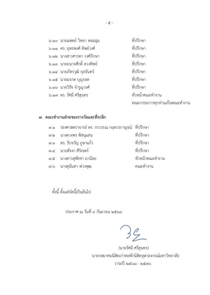 ประกาศสมาคมนิสิตเก่าหอพักนิสิตฯ เรื่องแต่งตั้งคณะทำงานกิจกรรมคืนสู่เหย้าชาวหอ 2568